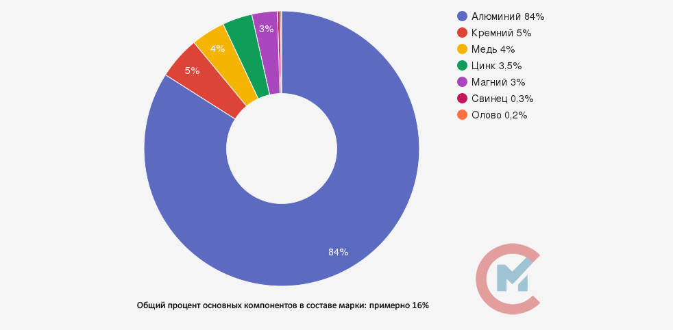 • Алюминий (Al) + Магний (Mg) 86%
