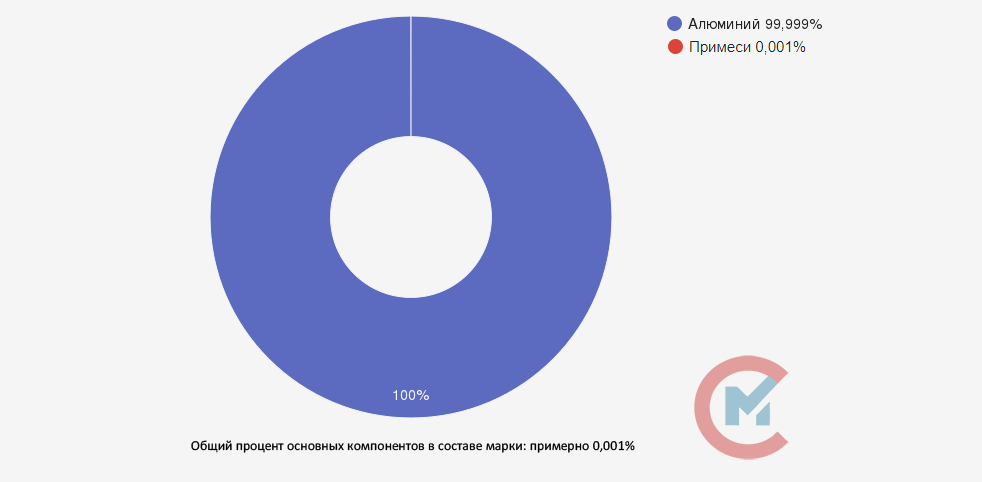 А999 представляет собой металлический сплав, основой которого является алюминий, содержание которого должно составлять не менее 99,9% (ГОСТ 11069-74, последняя версия не содержит материала).