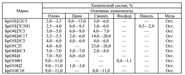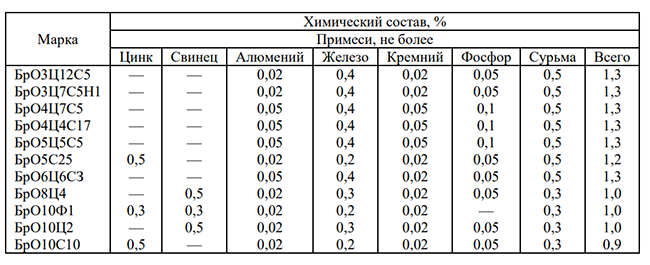 Химический состав бронзы БрО10Ц2 должен соответствовать ГОСТ 613-79 и изготавливаться в чушках, также допускается изготовление в слитках или блоках.